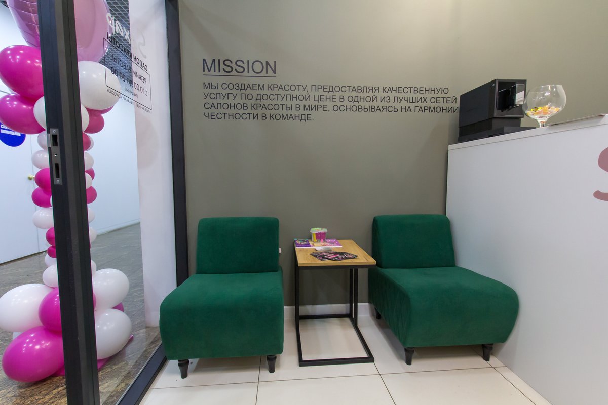 Зашла в салон, будучи во Владивостоке проездом, осталась в восторге. Девочки-мастера провели со мной несколько процедур на лице, включая депиляцию и работу с бровями. Меня поразило качественное обслуживание и очень внимательное отношение - они сделали всё, что я хотела и выполнили это прекрасно. Уже прошло время, а результат сохранился так, будто всё сделали вчера. Сам салон на втором этаже тоже произвел приятное впечатление, я даже сфотографировала его.